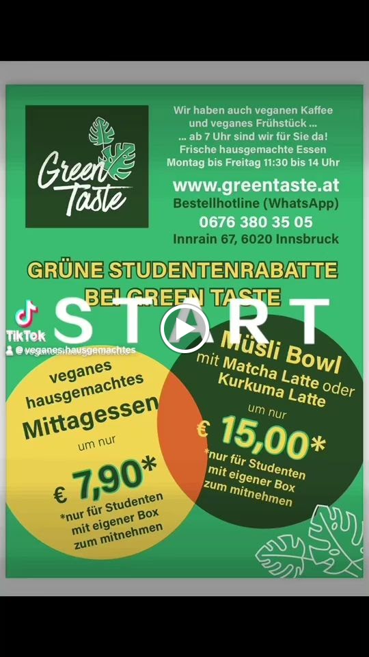 Introducing Green Taste, an inviting vegan café located at Innrain 67, Innsbruck. This haven for plant-based food lovers offers a deliciously diverse menu featuring everything from hearty breakfast options to flavorful lunch specials, all crafted with meticulous attention to taste and nutrition. For just €12.00, you can indulge in a filling vegan lunch that includes a generous salad and drink.